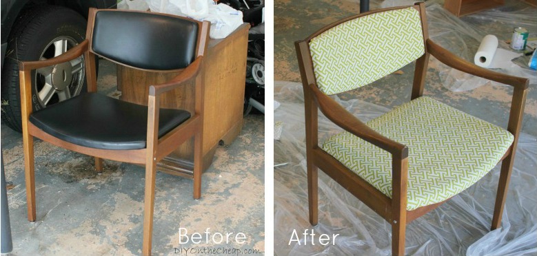 I just re-covered the chair with new fabric. I didn’t want to do anything permanent in case we decide to use this chair somewhere else in the future. I got a serious deal on it at the thrift store, too!
